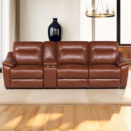 TRENTO DUAL-POWER LEATHER RECLINING CONSOLE LOVESEAT