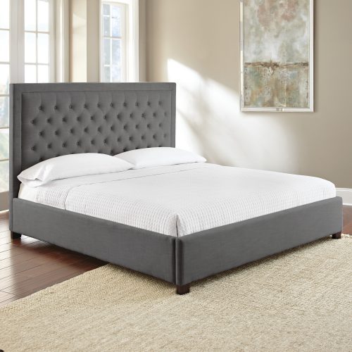 WILSHIRE KING SIZE GRAY UPHOLSTERED BED
