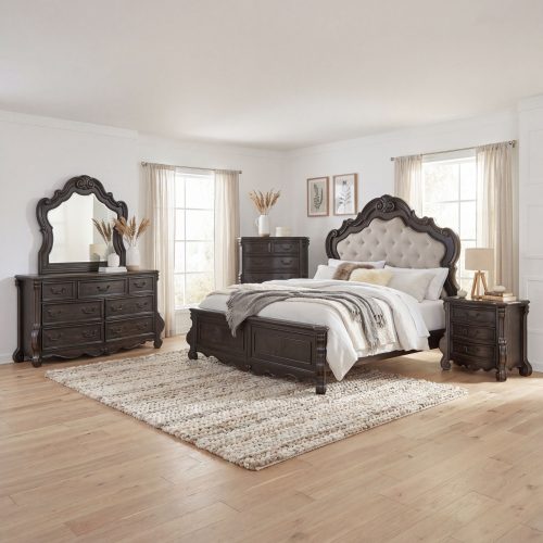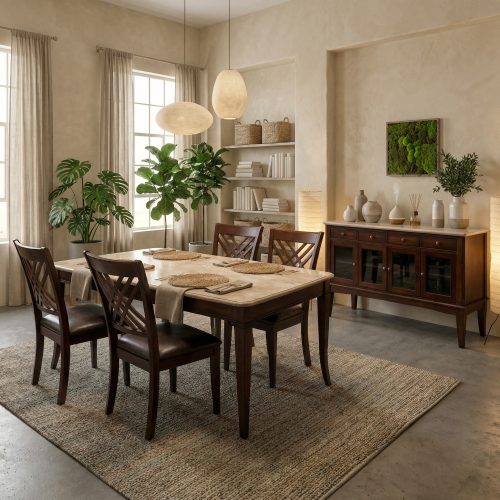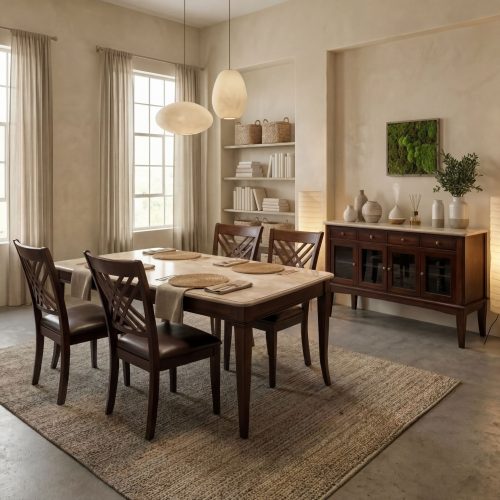 ADRIELLE 6-PIECE MARBLE TOP DINING SET AND SIDEBOARD