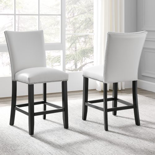 CAMILA 24″ COUNTER STOOL, WHITE VEGAN LEATHER WITH NAILHEAD TRIM