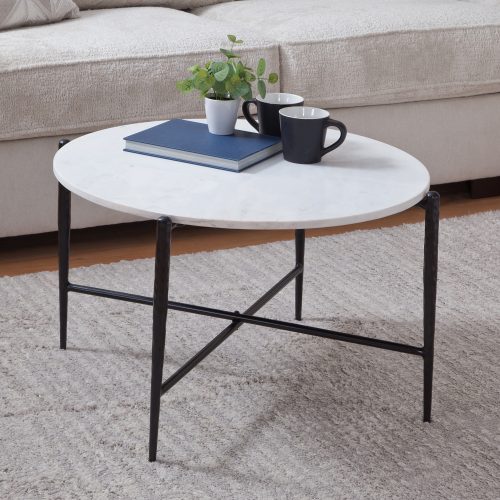 • LOXIE 29.5″ ROUND SOLID WHITE MARBLE TOP COCKTAIL TABLE