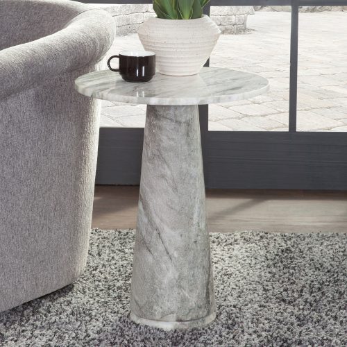 • JONI 18″ ROUND FANTASY GRAY MARBLE ACCENT END TABLE