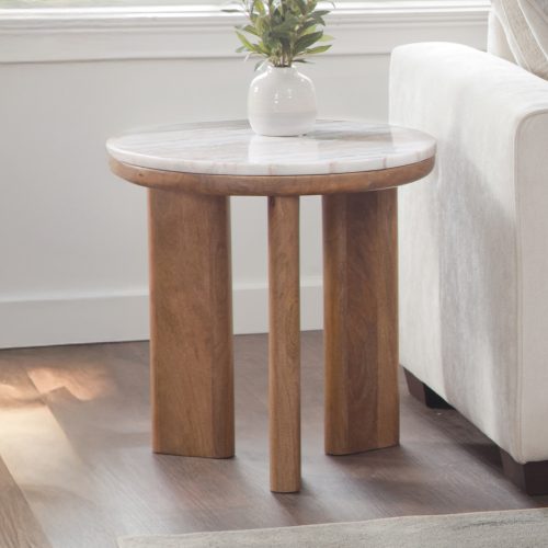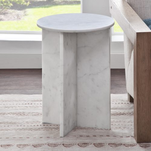 • JONI 18″ ROUND TALITA WHITE MARBLE ACCENT END TABLE