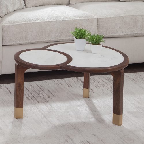• OORMI BANSWARA WHITE MARBLE INLAY COFFEE TABLE