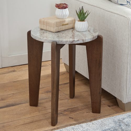 • SHAVON SOLID TORONTO BROWN MARBLE 18.5″ ROUND END TABLE
