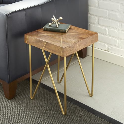 • JONI 18″ ROUND TORONTO BROWN MARBLE ACCENT END TABLE
