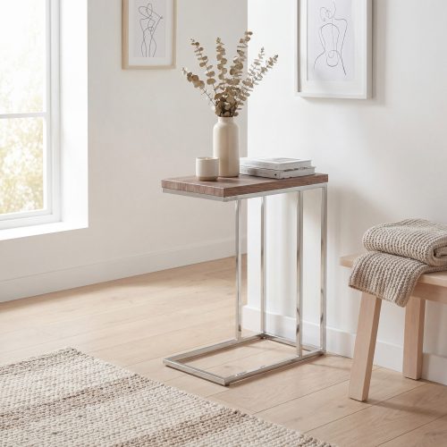 • LUCIA CHAIRSIDE END TABLE, GRAY/BLACK NICKEL