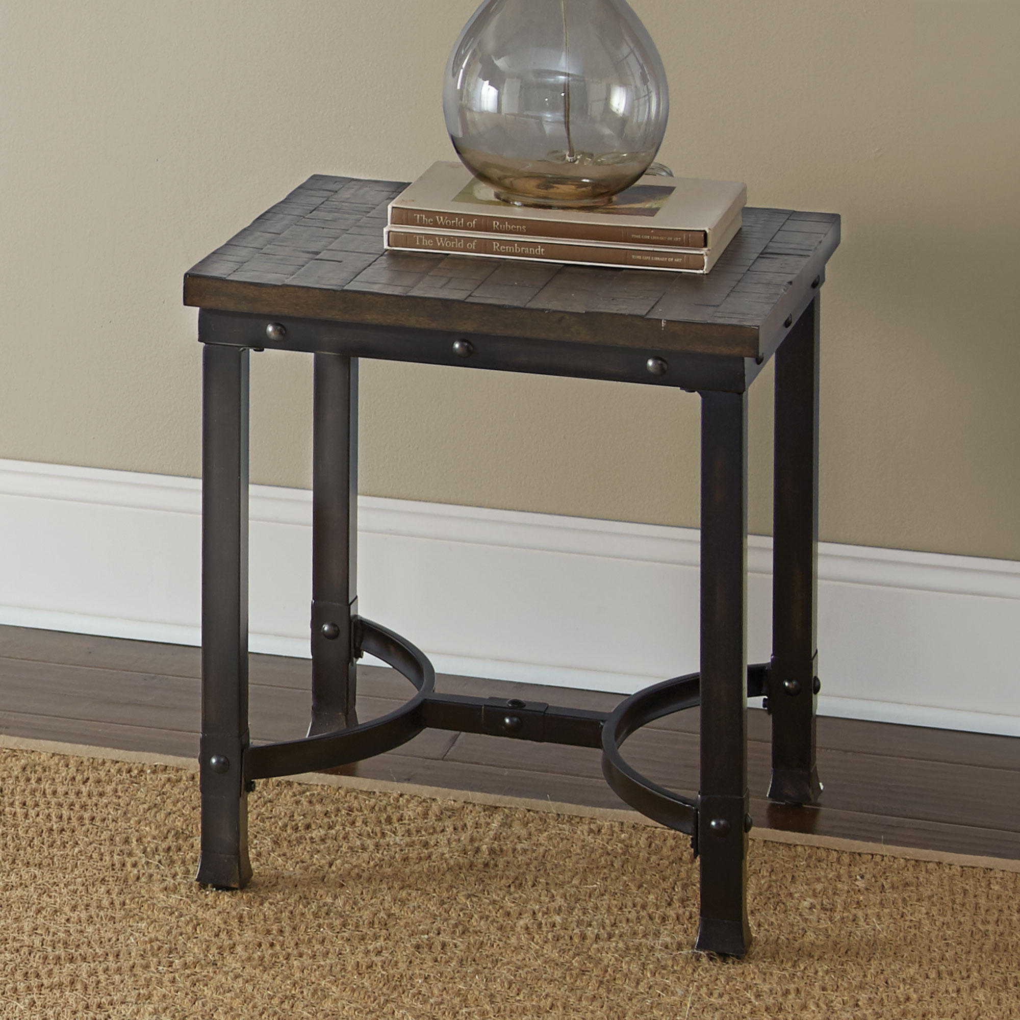 Add a hint of rustic flavor to the room with the Steve Silver End table. Constructed to give the perfect modern countryside look, it features dark iron legs and block style butcher wood table top. Distressed finish fits perfectly in a room.
