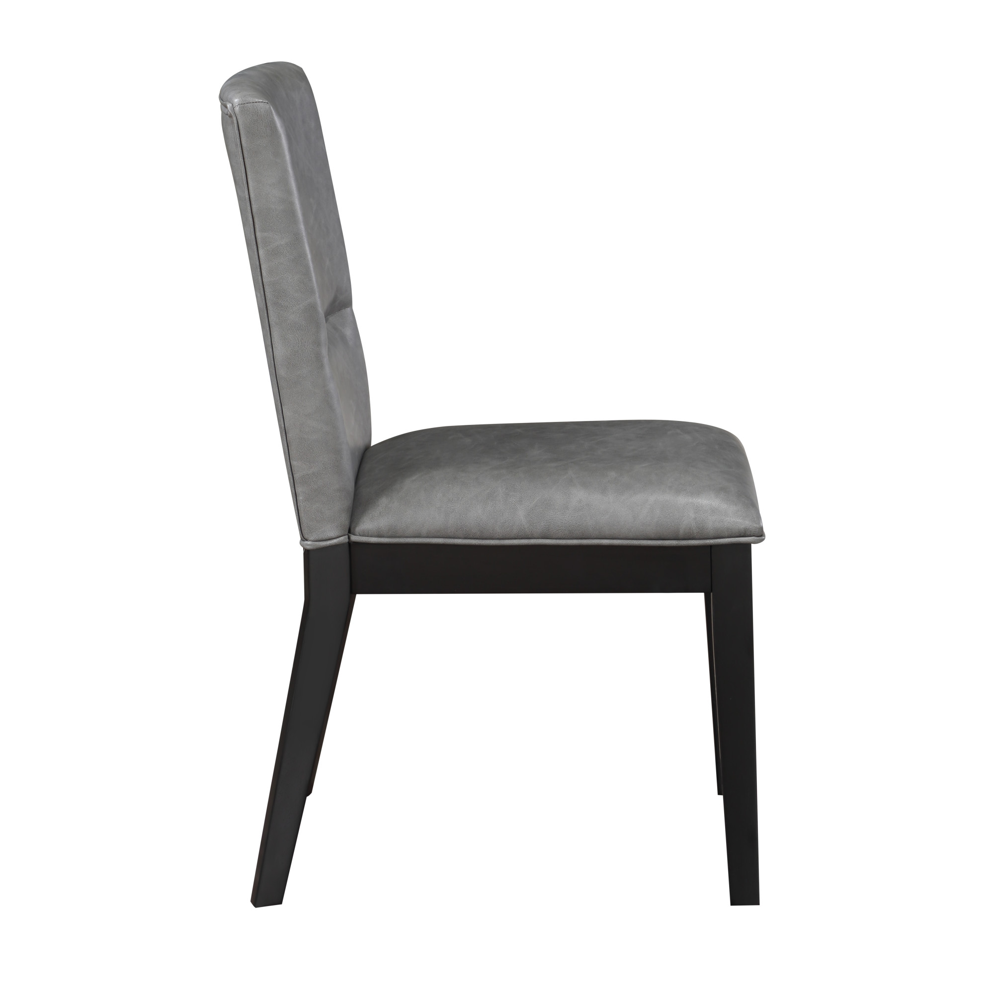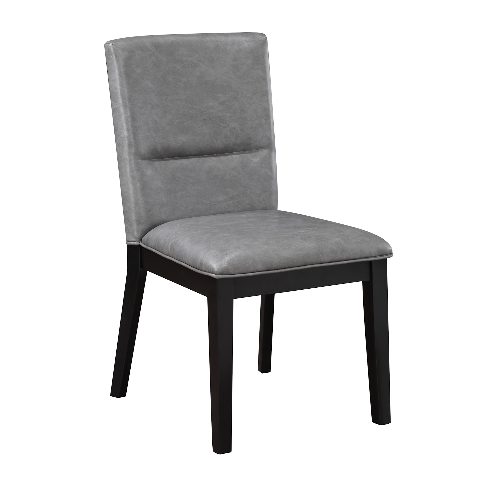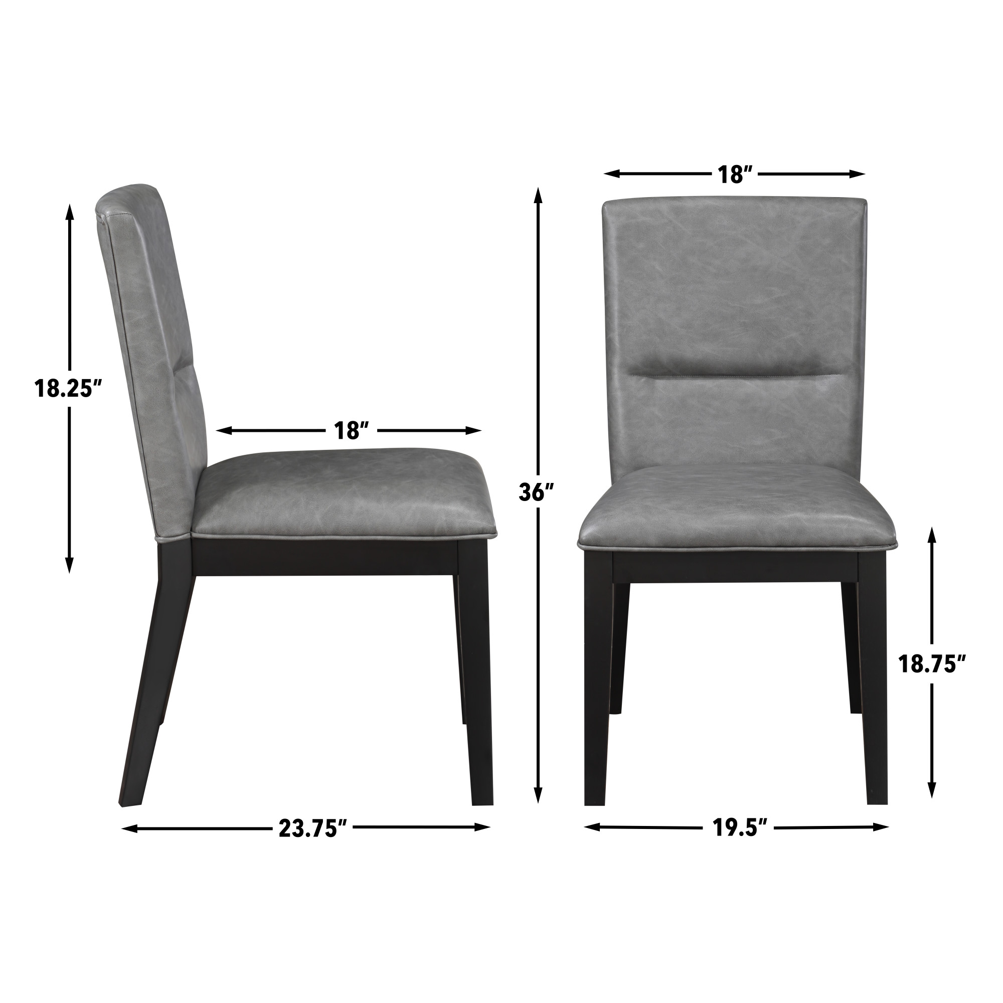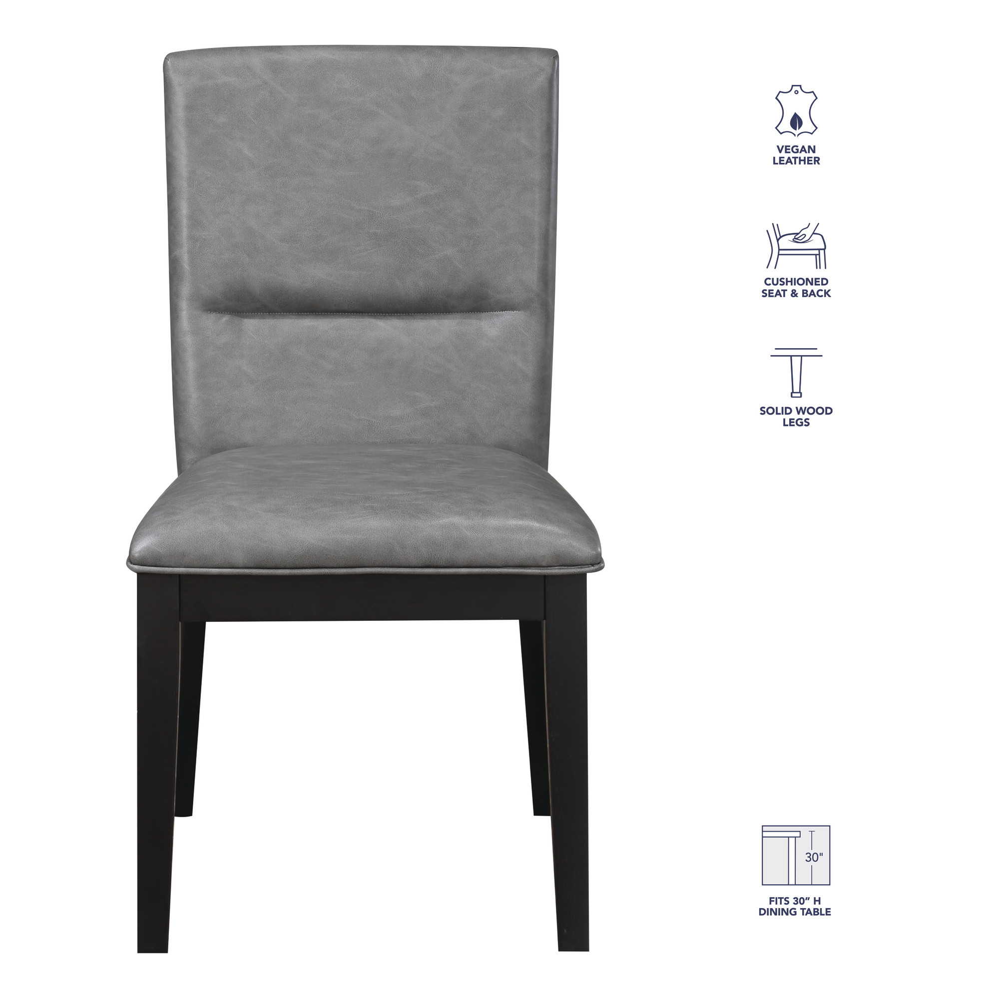 Inspired by mid-20th Century Modern designs, the Amy 5-piece dining set pairs a striking faux-marble table with plush moonlight gray faux-leather chairs in a cozy yet elegant ensemble. Marrying retro aesthetics with modern flair, the table boasts sleek lines, an ebony-finished base, and a convincingly authentic faux-marble top. The Amy Side Chairs, built for durability with corner-blocked seats and sturdy legs, also prioritize comfort with foam and memory foam cushioning. Perfect for intimate gatherings of four, this set ensures each dining experience remains memorable.