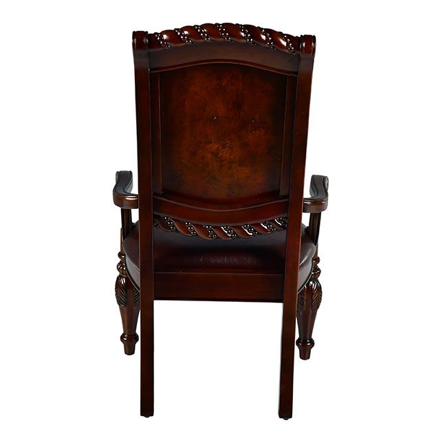 Opulent traditional styling with utmost attention to detail, the Antoinette Arm Chair is sure to impress. A great chair for the head of the table or as a free-standing guest chair for extra seating in a room, this Arm Chair features a window-pane, button-tufted back adds style to the upholstered polyurethane back while the upholstered seat makes your dining experience eminently comfortable. Classic acanthus leaf and grape moldings adorn the chair for a beautiful presentation.