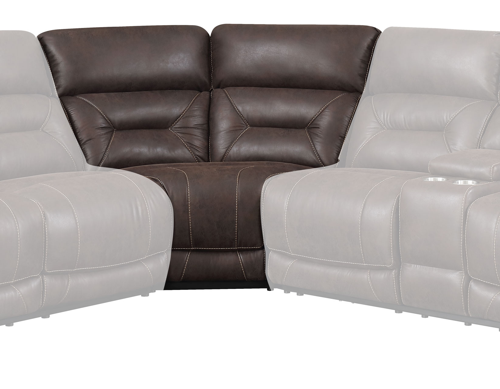 The ultimate in reclining comfort, Aria has power functions built throughout. Constructed of Saddle Brown colored fabric, the sectional offers power footrest and power articulating headrest so you never have to sacrifice comfort to watch your favorite shows. The power control panel features a USB port for recharging devices and a home button to return each recliner to its original position.