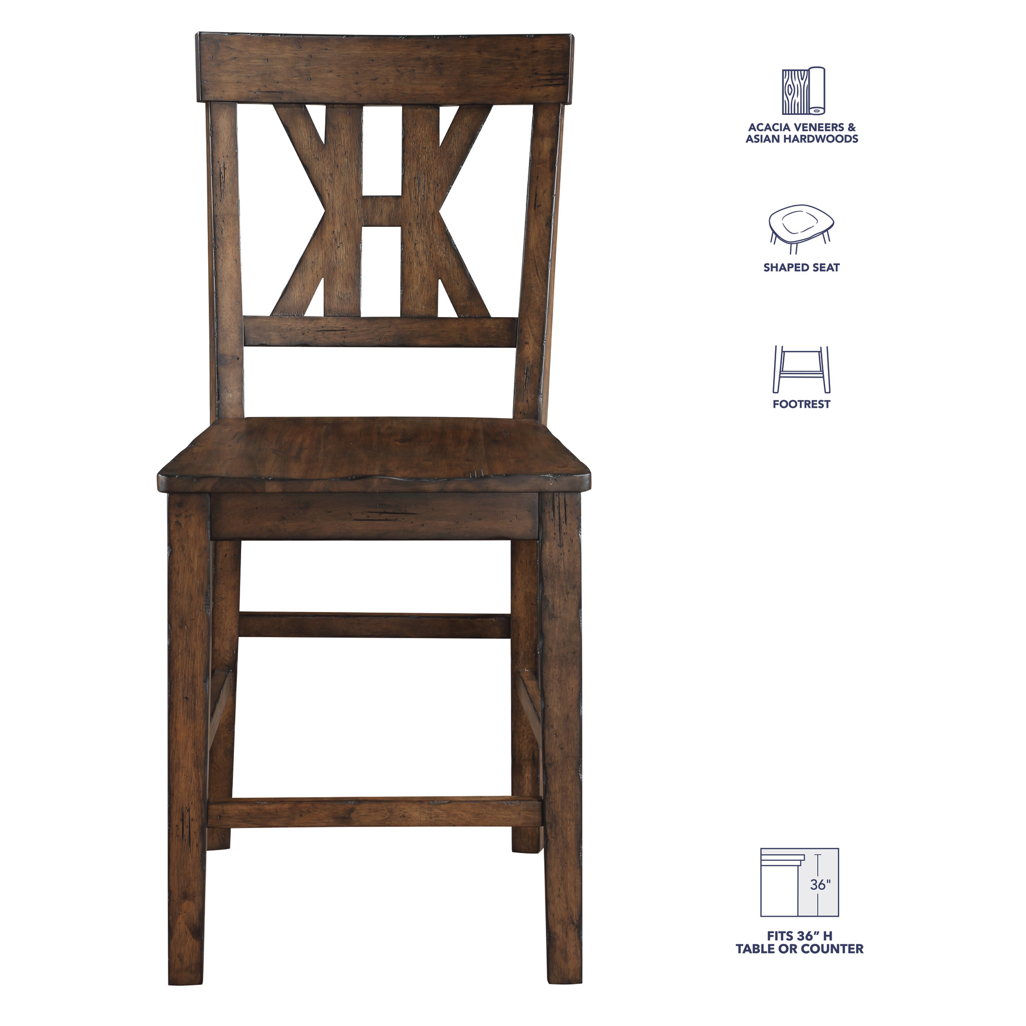 The Auburn 24″ Counter Stool brings timeless farmhouse charm with its dark tobacco finish, burnished edges, and wood-scored distressing that echo the beloved Auburn collection. A shaped back and contoured seat offer exceptional comfort, while the sturdy stretchers and built-in footrest enhance stability. Designed for 36-inch kitchen counters or counter-height tables, this stool delivers both style and everyday ease.
