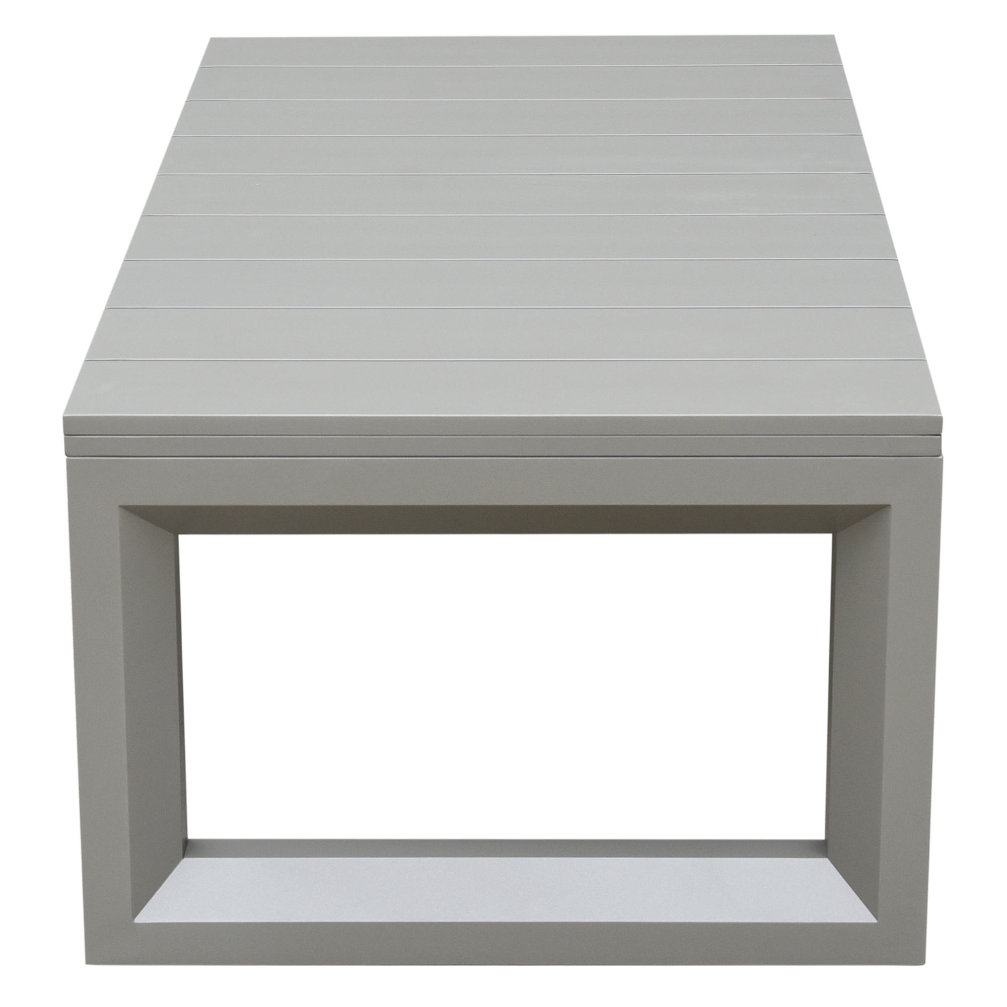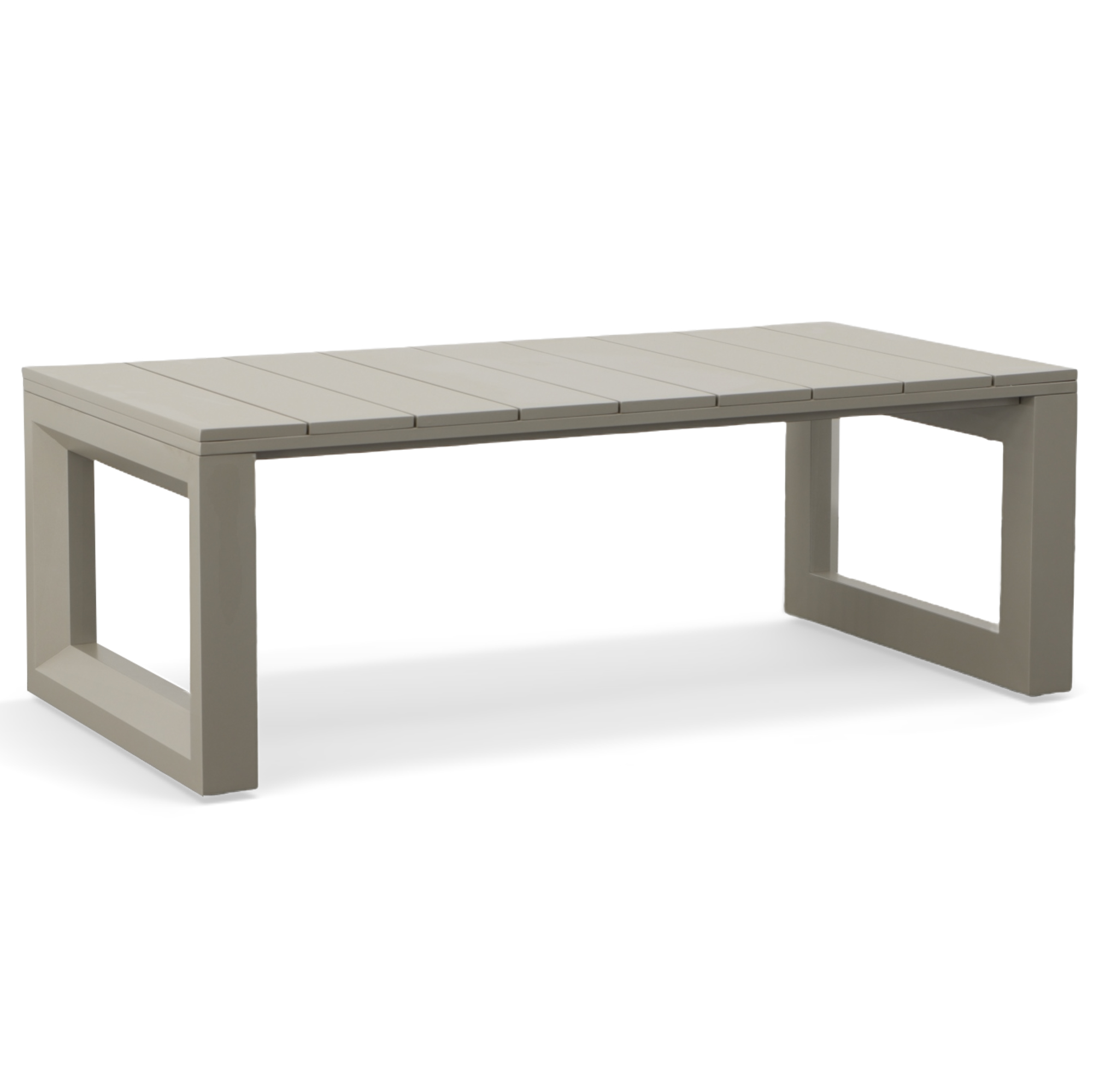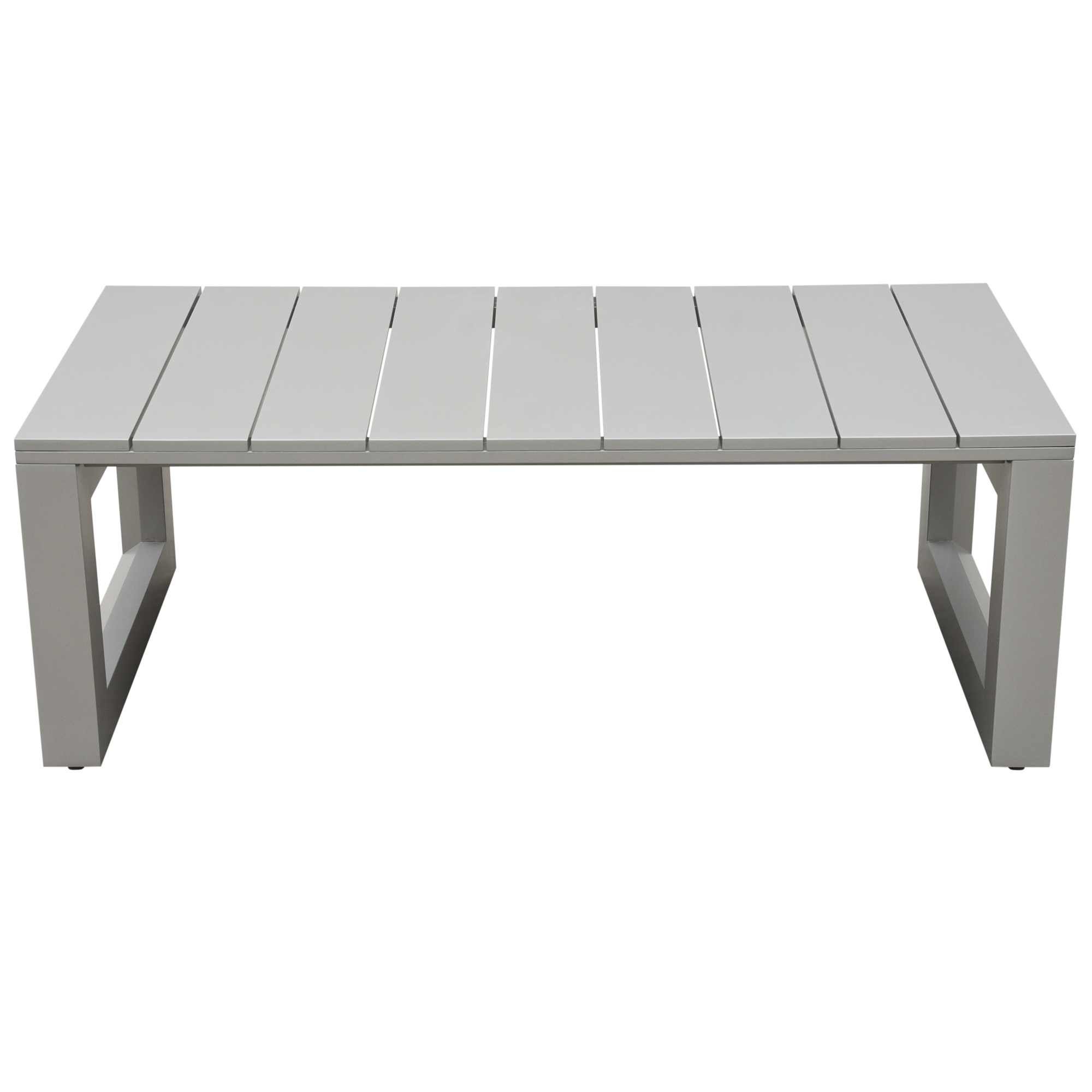 Neutral contemporary style in an outdoor set that will make your patio a showcase. This Cocktail Table looks like it was sculpted for the great outdoors with beveled end panels that frame a modern geometric pattern. And although it looks like an indoor item, this table is built for the outdoors with a rust resistant aluminum frame that is also scratch and weather resistant.