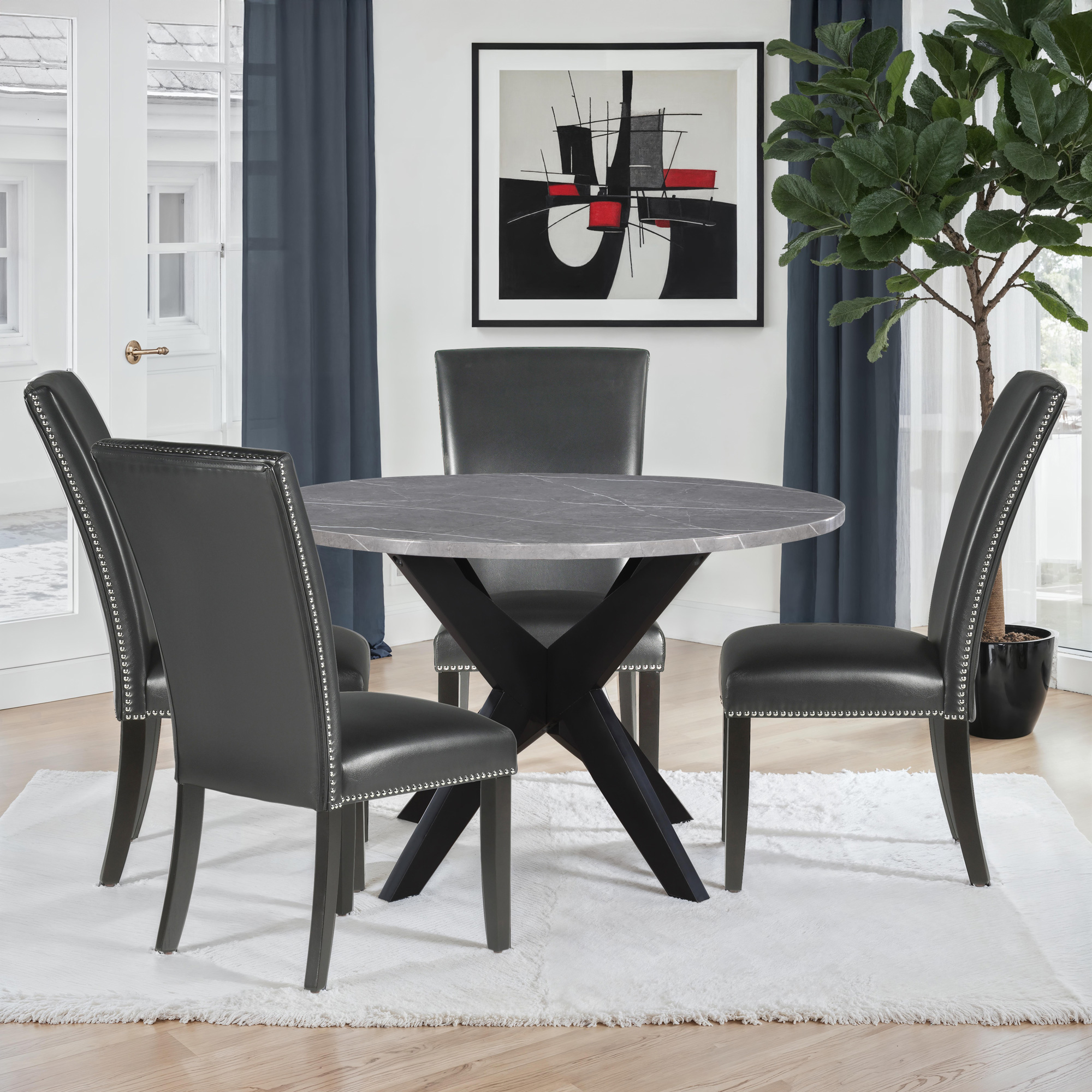 Complete 5-Piece Dining Set: Includes the Amy 48-inch round faux-marble dining table and four Finley Black Vegan Leather Side Chairs for a stylish, cohesive dining space.
