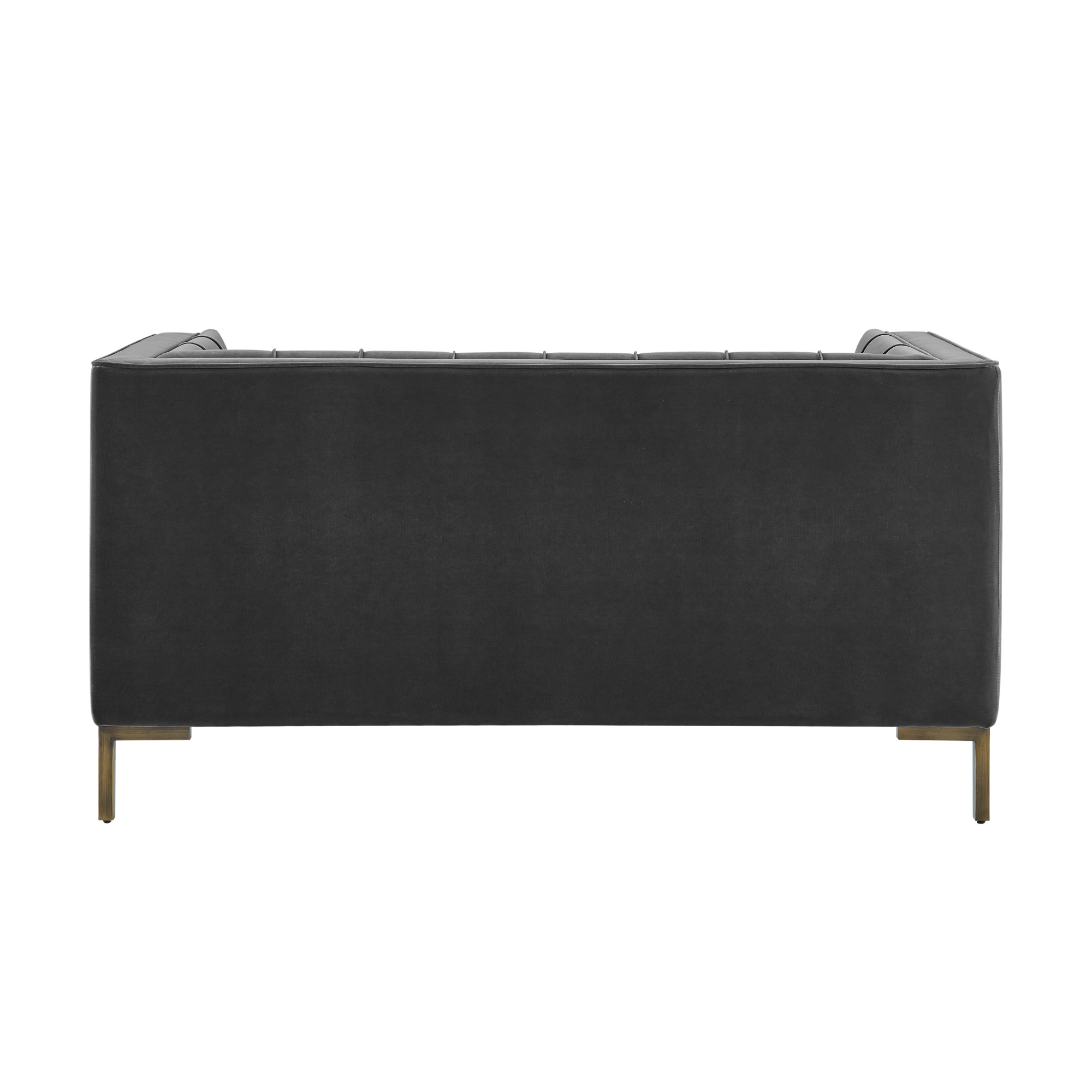 Designed for luxe living, the Isaac gray velvet Loveseat combines sleek lines and sumptuous finishes to create the ultimate opulent effect. This alluring Loveseat follows a classic mid century modern design but updates the style with features such as brass, angular legs and rich velvet fabric. The channel stitching in a vertical and horizontal pattern is an elegant design detail that is sure to draw the eye and attention of onlookers.