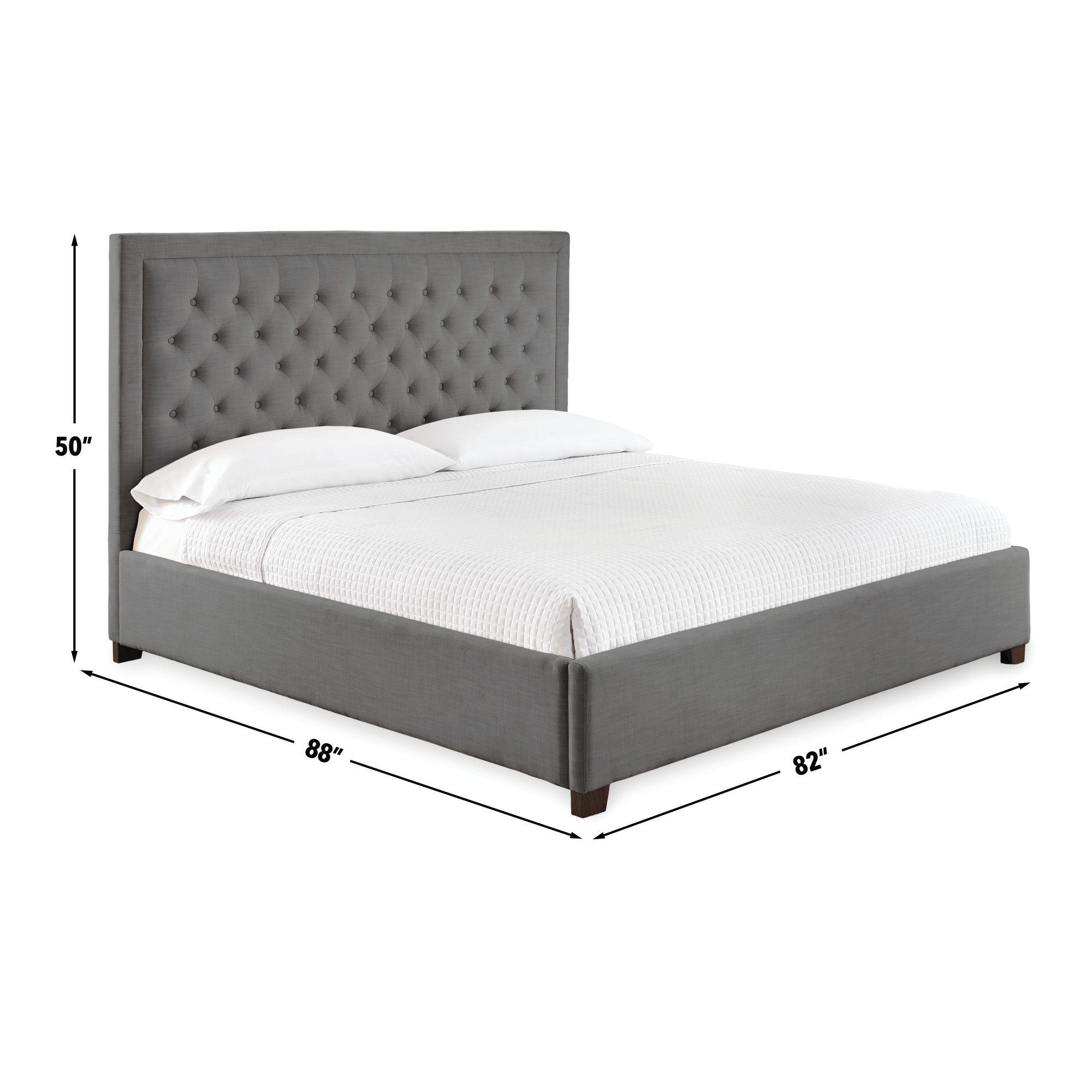 Clean lines mark the transitional style of the gray Isadora bed with styling details such as button tufted headboard. Available as a bed in gray, sand or white color options and King and Queen sizes. You will love how the Isadora bed dresses up your bedroom!