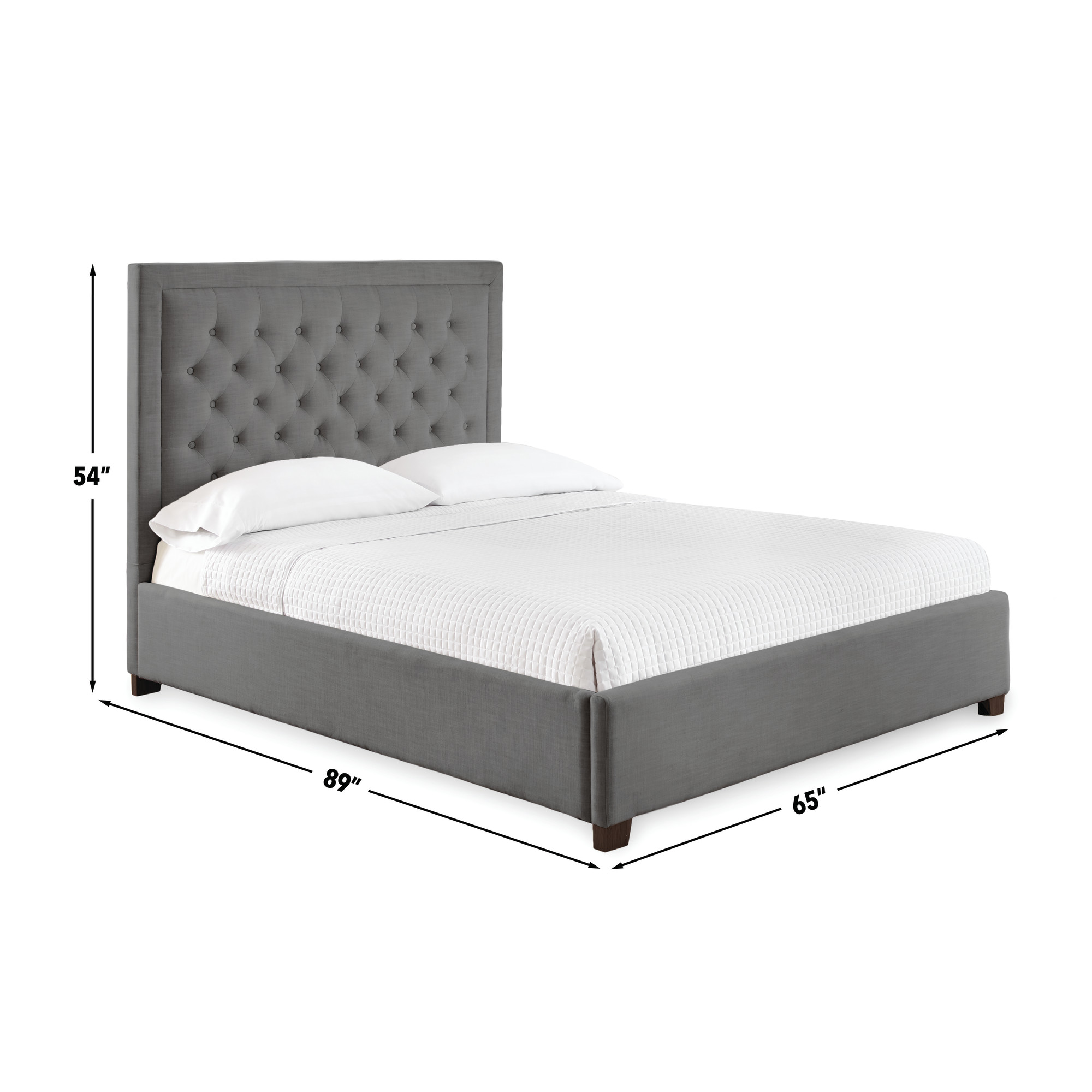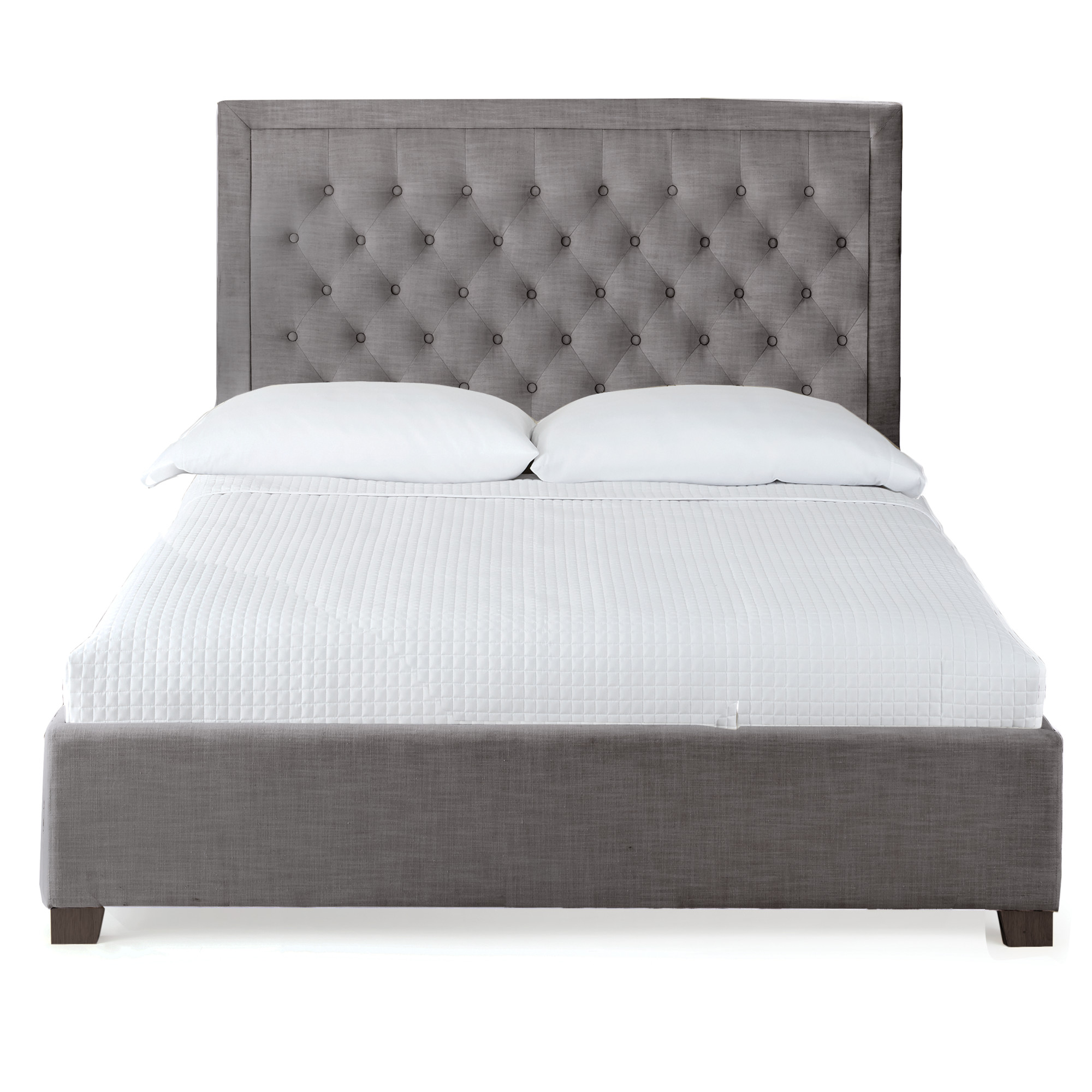 - Footboard ships complete with side rails and slat package that includes center support system to accommodate foundation and mattress or use as a platform bedClean lines mark the transitional style of the gray Isadora bed with styling details such as button tufted headboard. Available as a bed in gray, sand or white color options.