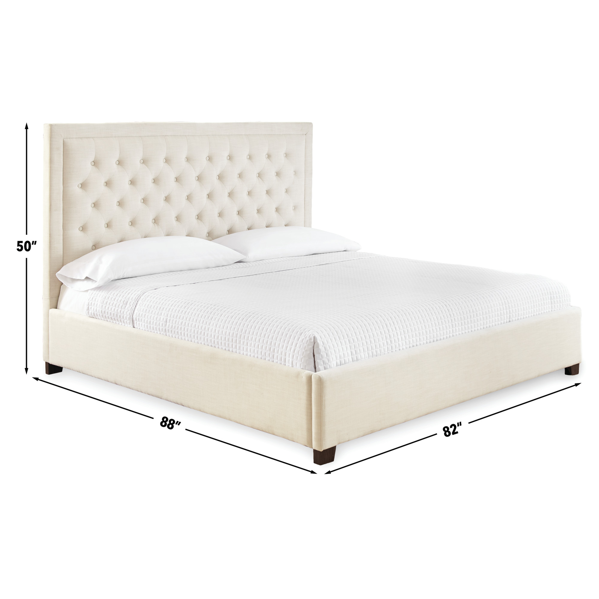 Clean lines mark the transitional style of the gray Isadora bed with styling details such as button tufted headboard. Available as a bed in gray, sand or white color options and King and Queen sizes. You will love how the Isadora bed dresses up your bedroom!