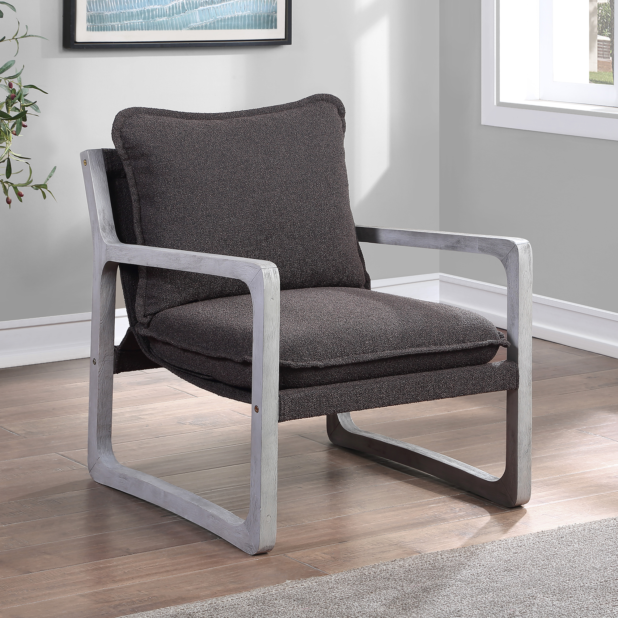 Primitive styling meets comfortable living in the Kai Accent Chair. A rough-hewn solid wood frame adds a deep rustic vibe that is combined with an upholstered nubby textured seat for a chair you can call your won. The black seat and medium gray frame create a neutral combo that will go with virtually any decor. Great as an Accent Chair or Office Chair, the Kai cuts a relaxed casual profile in a chair that proves you don’t have to suffer for your style!