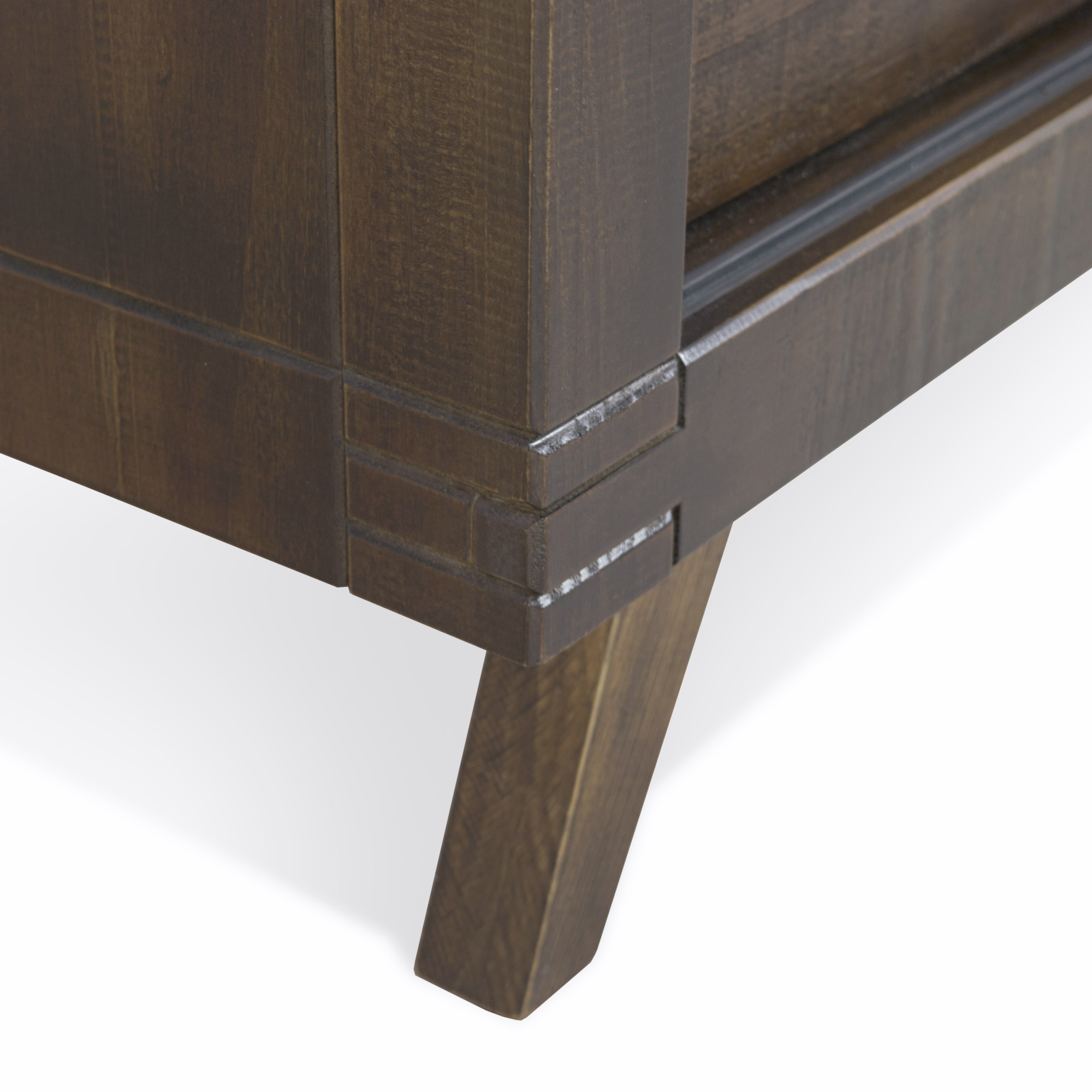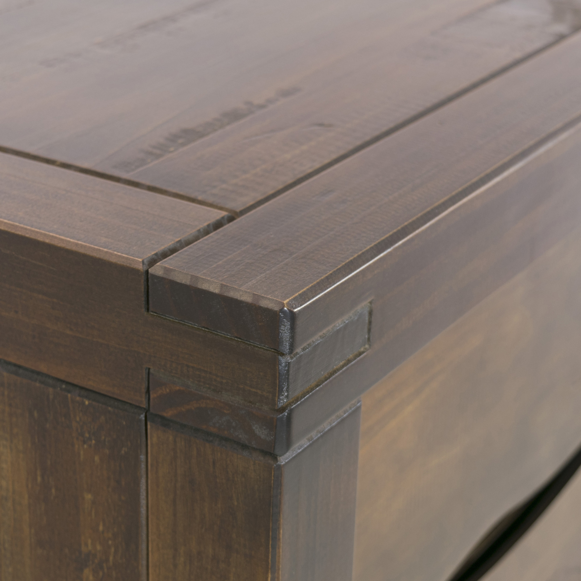 • Hand-stained in a multi-step cocoa finish and enhanced with a wire-brushed texture, this piece highlights the wood’s natural grain and knots while adding depth and distinctive character to any space.