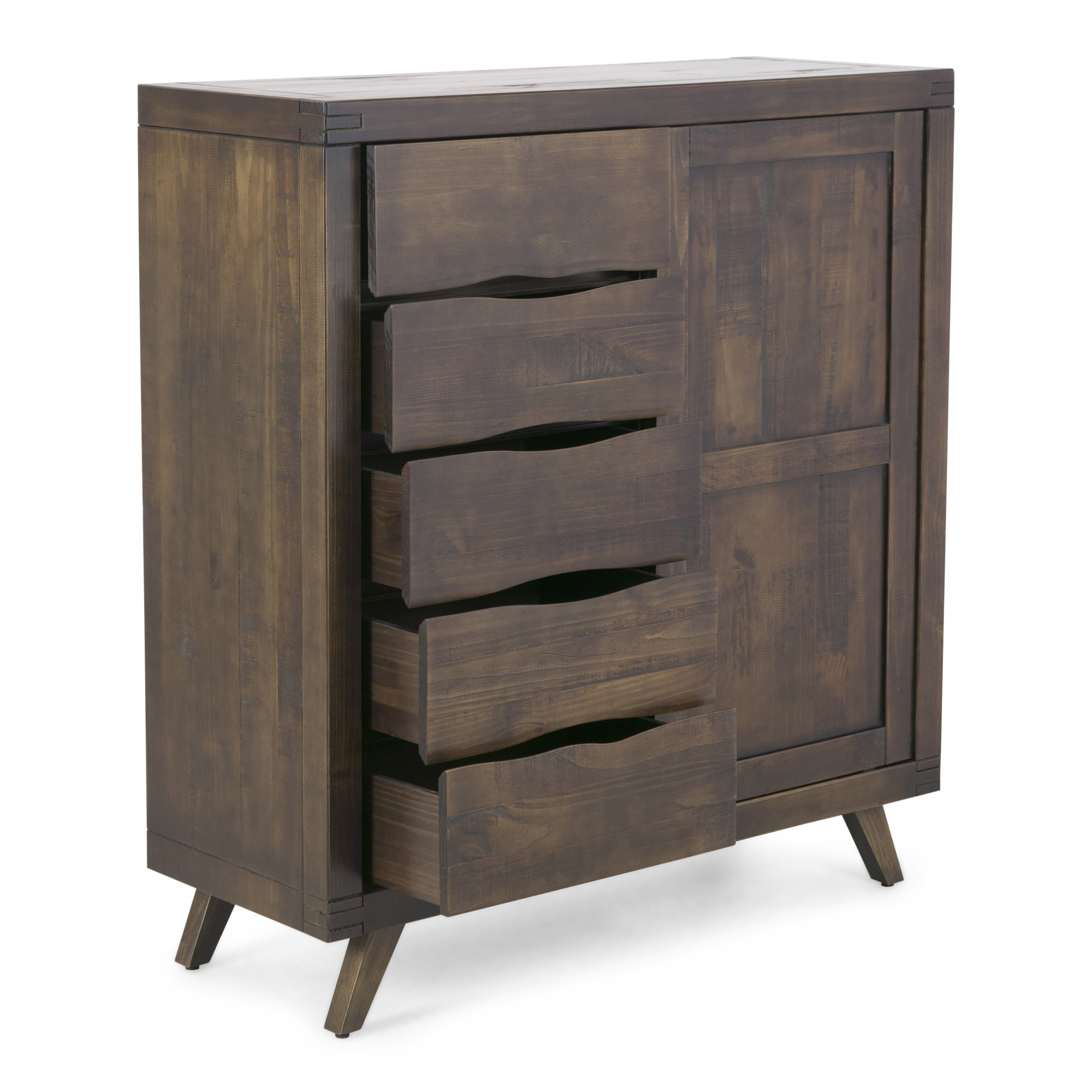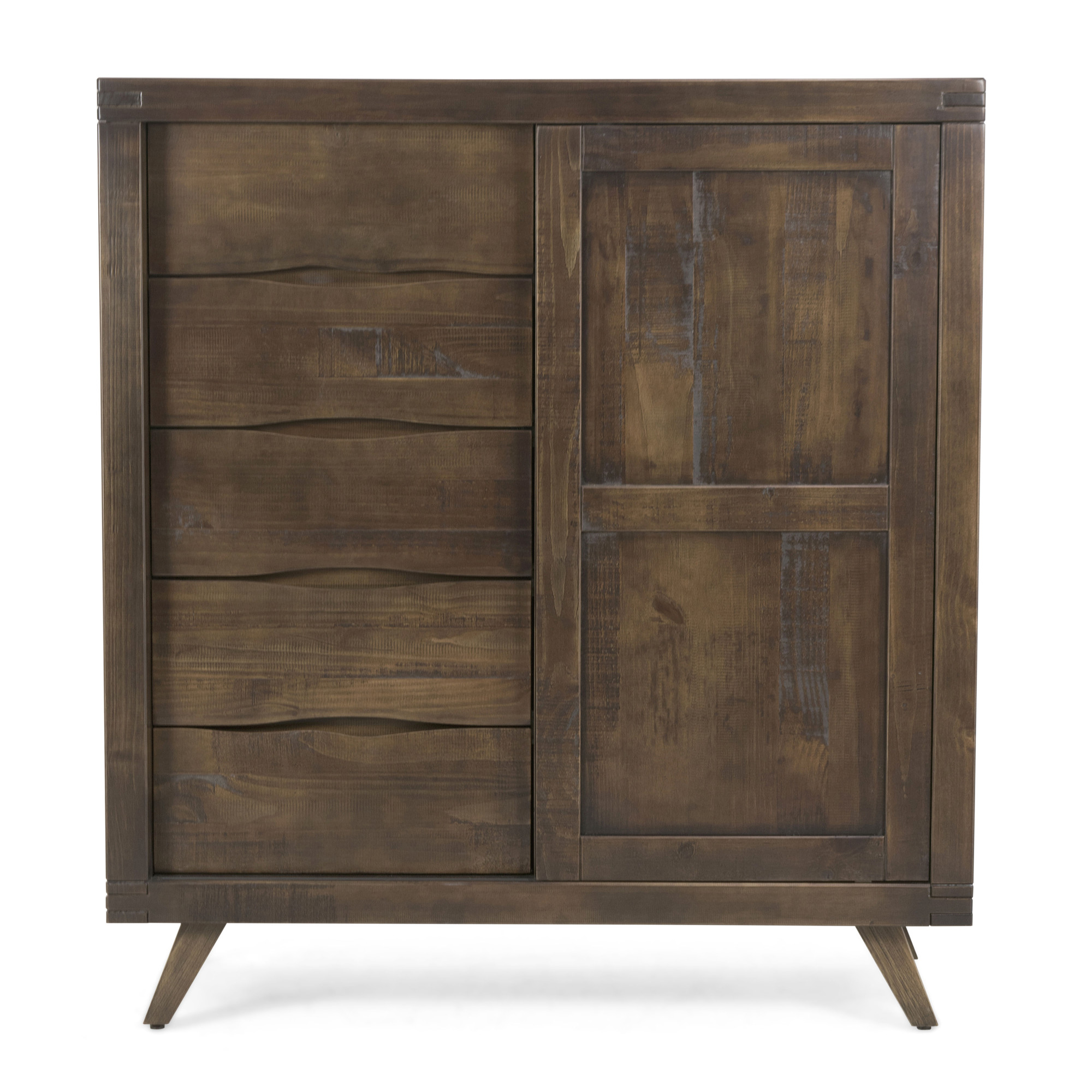 Pasco perfectly combines elements of exotic styling and contemporary design in a solid wood bedroom collection that is both modern and rustic simultaneously. Drawers feature a live edge that is beautiful and functional for use a a drawer pull. You will find aspects of mission and mid-century modern style in the bed and storage pieces with bowtie accents used to embellish the primitive styling.