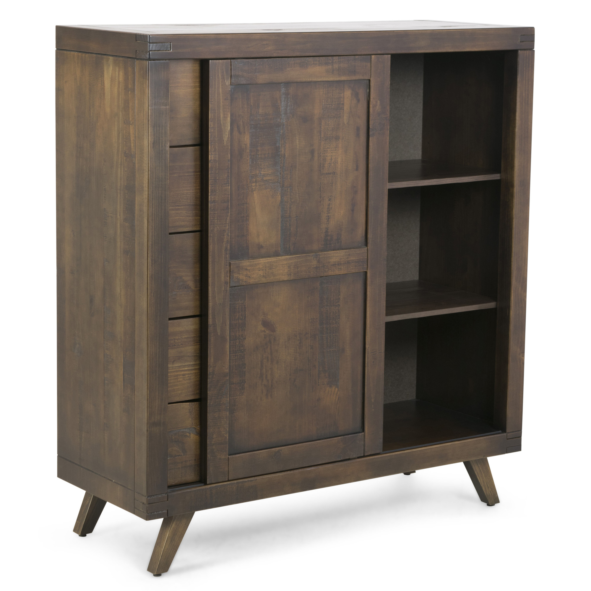• Styling details include rustic live edge treatment with mid-century modern styling and mission bowtie accents