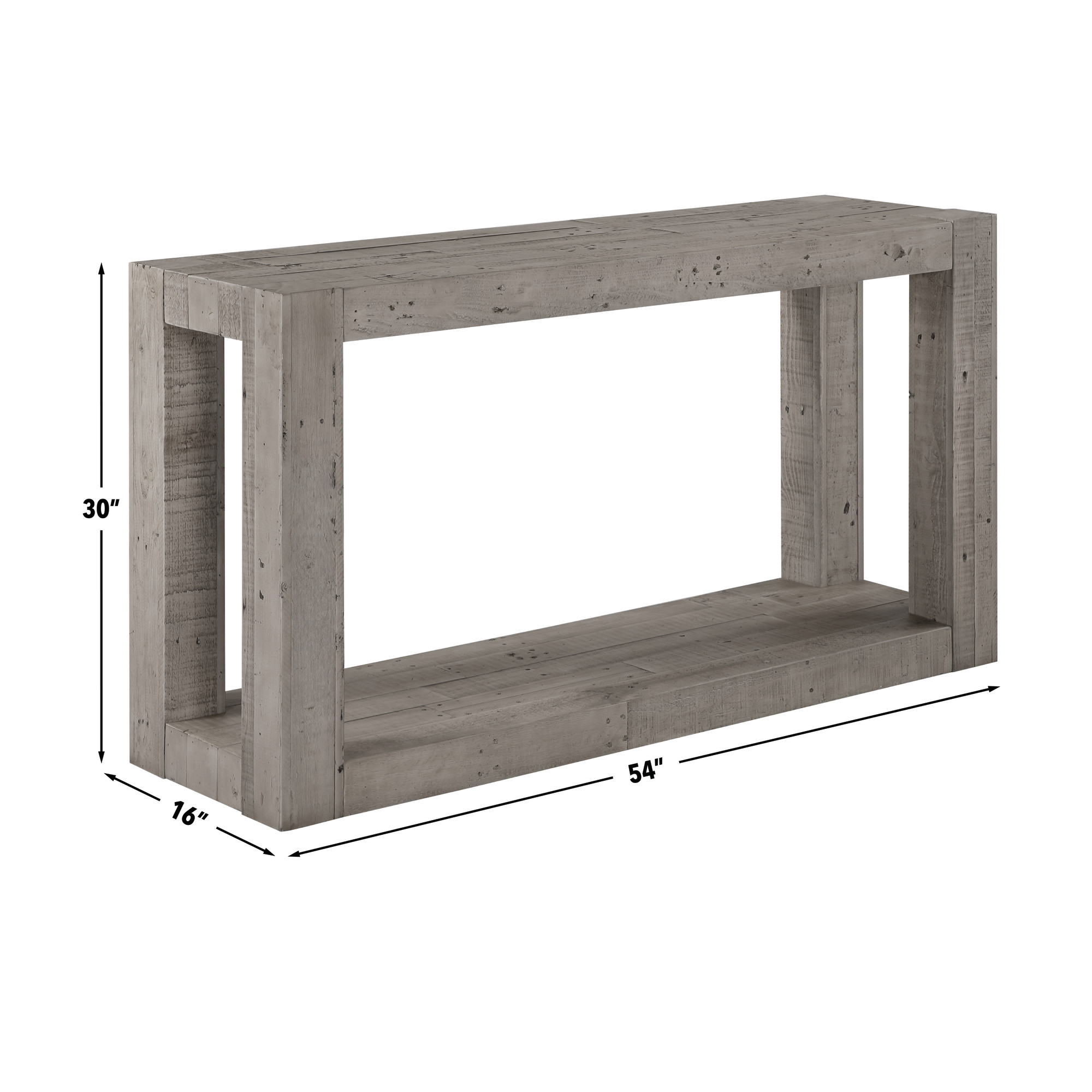Crafted from solid reclaimed pine with a distressed gray finish and saw rasping for an heirloom feel, the Pinedale Sofa Table exudes rustic charm. Its versatile design makes it perfect for placement in a hallway, behind a sofa, or as a smaller entertainment piece. The relaxed finish and neutral tones complement a variety of today’s casual interiors, adding warmth and character to any space. Embrace the timeless appeal and enduring quality of the Pinedale Sofa Table, where classic design meets practical functionality.