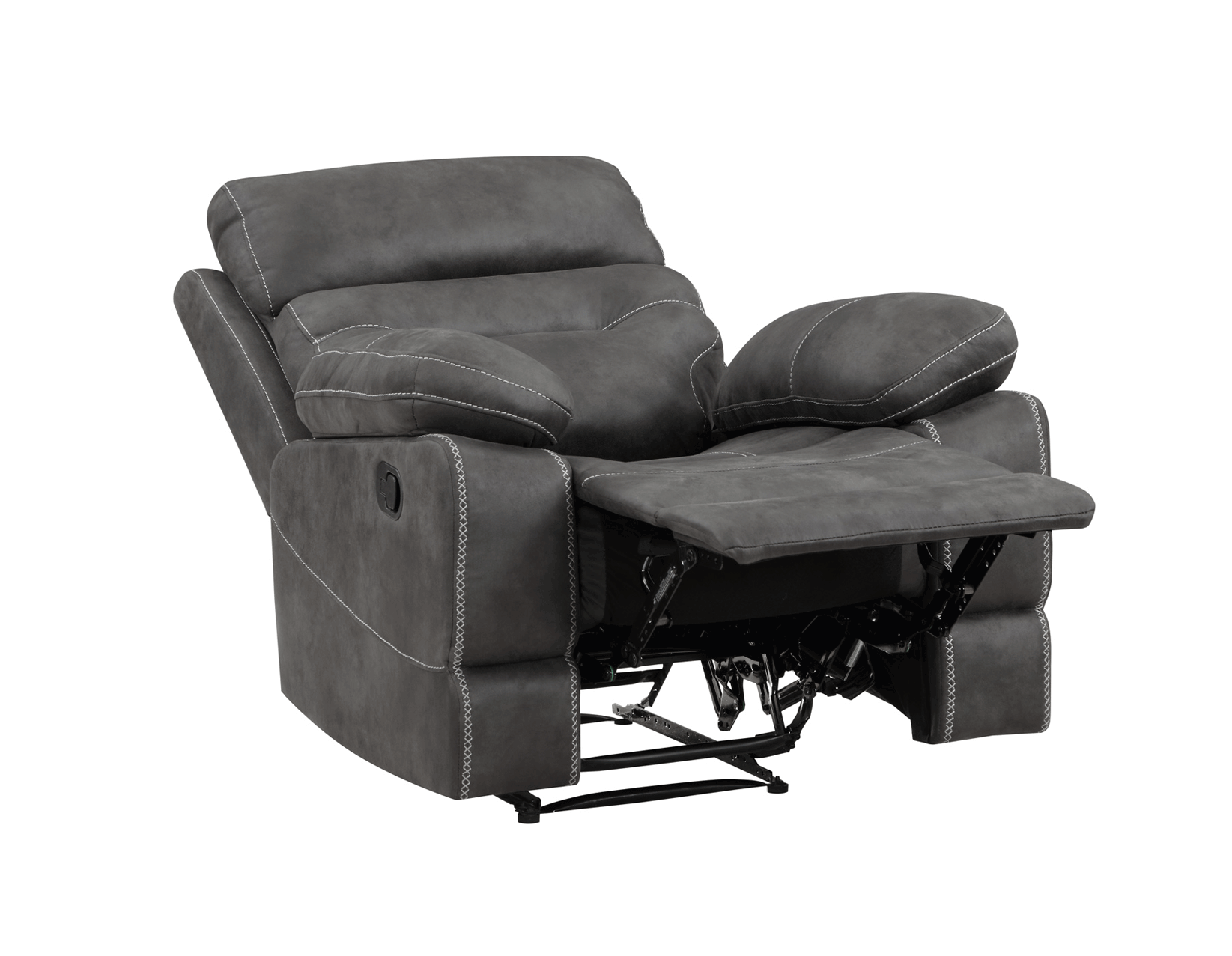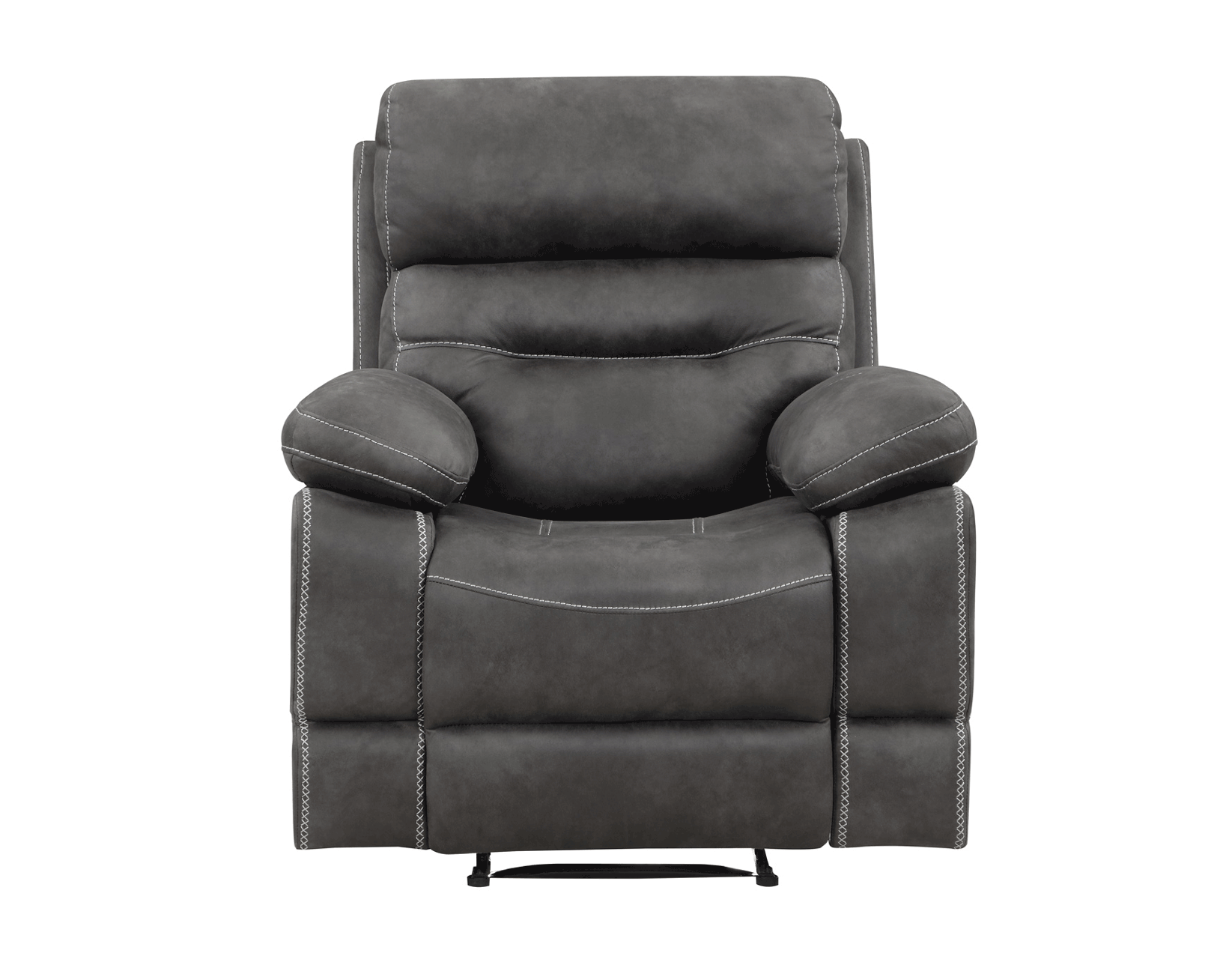 With an effortless pull of the lever, slip into relaxation mode and enjoy your favorite book or movie in divine comfort. The unique combination of style and comfort make this recliner the perfect addition to any room seeking both. Experience the ultimate in relaxation and style, order your dark gray Rudger manual recliner today!