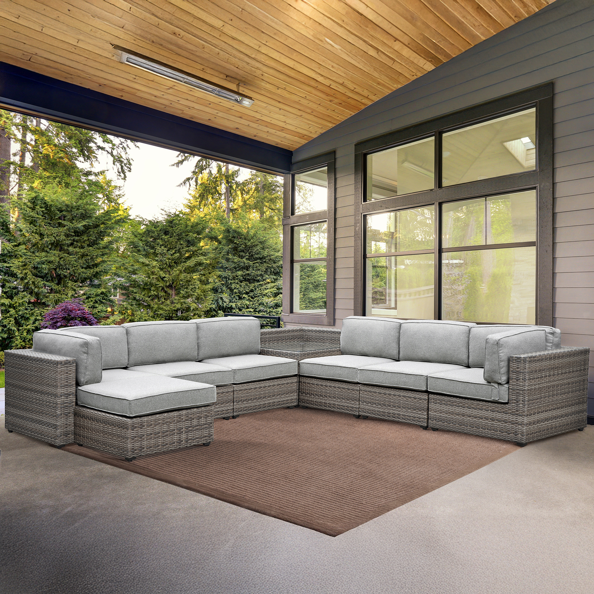 Sit a large crowd outside with the weather- resistant Tamyra sectional! Resin wicker and solution-dyed fabric covers are stain and fade resistant and built for the outdoors but with the comfort you expect from regular upholstery. 6-inch cushions are ultra-comfortable and removable for when the weather gets bad. The Corner Table features a removable glass top with an umbrella hole and a door on the back for storage. Upholstery with indoor looks but built so you can enjoy the great outdoors!
