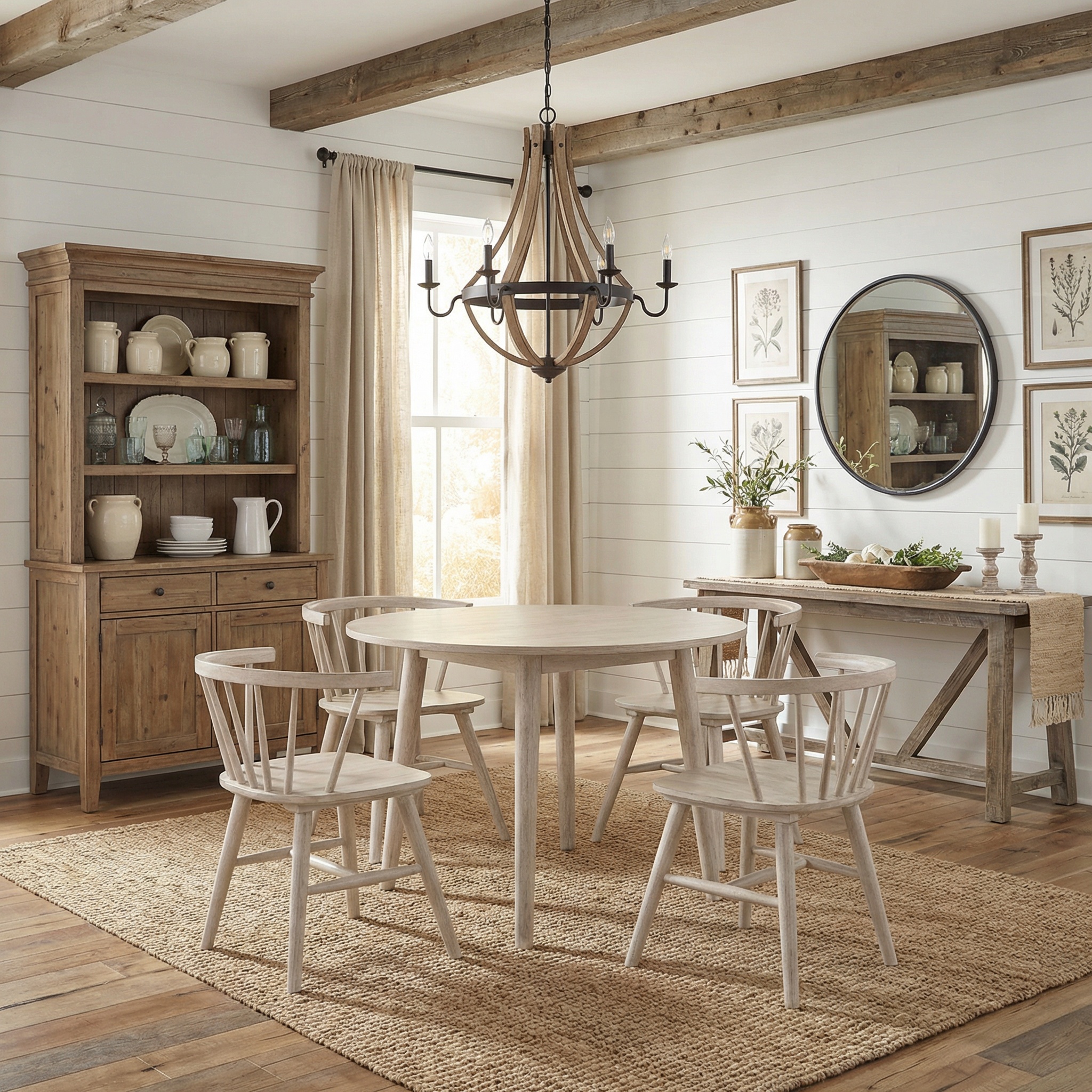 A beautiful addition to any smaller dining area, Willow exudes a modern farmhouse punch in a compact design. The 42-inch round table comfortably seats four, boasting sleek lines and a modern tan finish crafted from oak veneers with solid wood legs. Paired with the accompanying side chairs, which offer a modern twist on the classic Windsor design, this ensemble effortlessly bridges the gap between modern and farmhouse aesthetics. Versatile and stylish, Willow is the perfect choice for any modern or farmhouse environment.