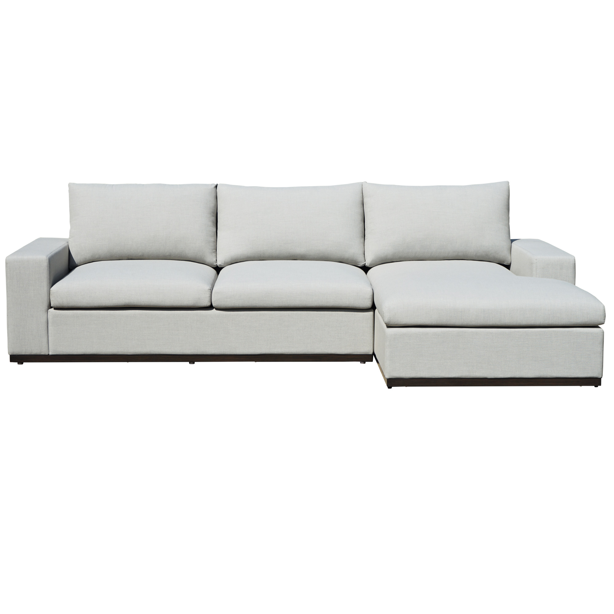 - Chaise has an aluminum frame with a hand-brushed aluminum plinth base and quick drying foam
