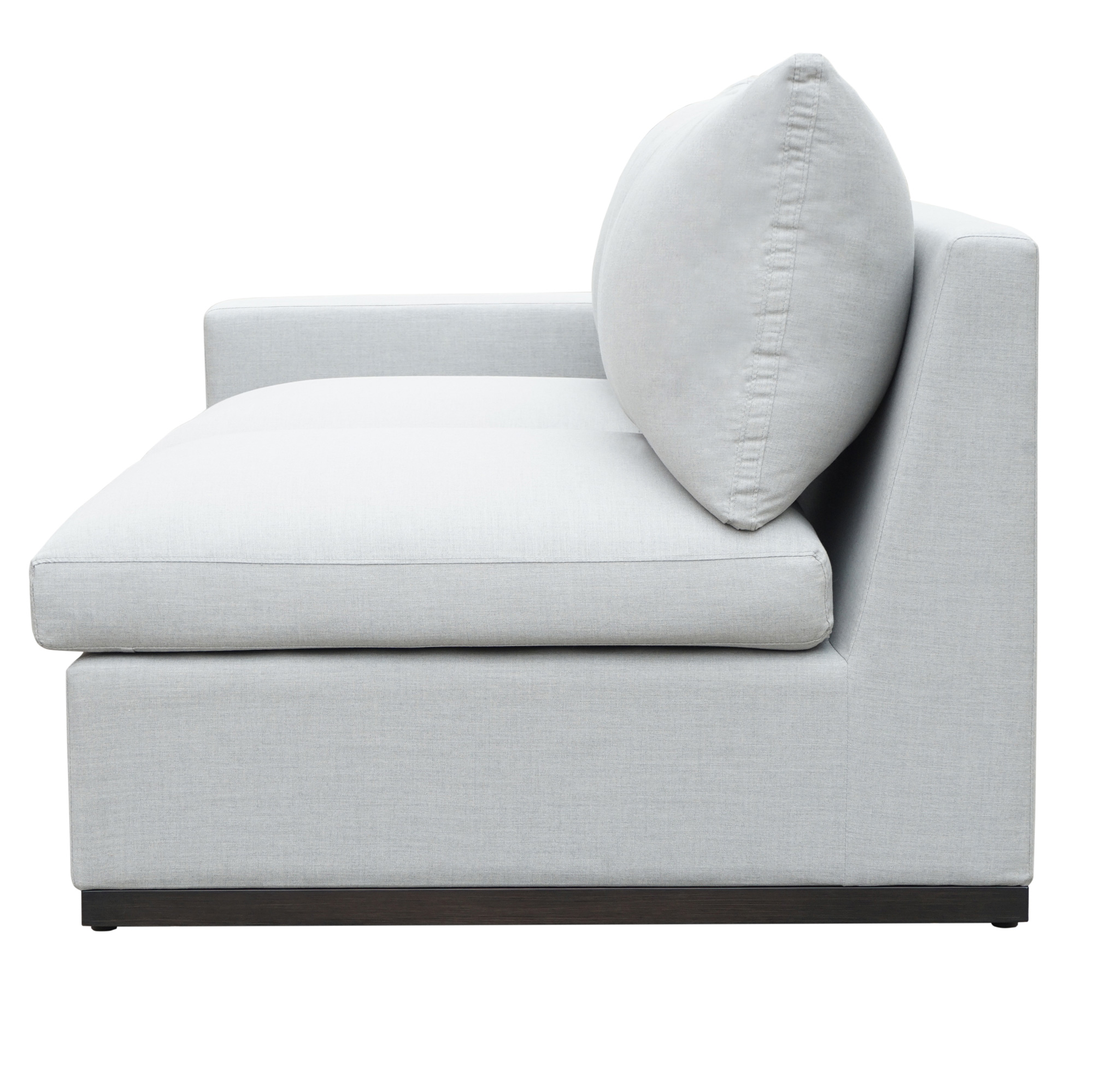 - Chaise has an aluminum frame with a hand-brushed aluminum plinth base and quick drying foam
